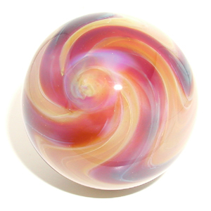 #06-30-02_04 Size: 1-9/16" $50.00 Made: June 30, 2002 Glass: Borosilicate (Pyrex®) & NorthStar®; Ruby & Blue on Caramel Owner: __________________ Date Acquired: Month day, Year
